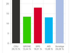 Die CDU erhält in der Samtgemeinde Amelinghausen in allen Wahllokalen und insgesamt mit knapp 30 % die meisten Stimmen.